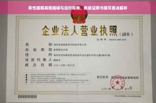 摘要:本文介绍了男性脑癌的疾病真相和应对之道。内容涵盖男性脑癌的基本信息、症状表现、诊断方法以及治疗手段和预防措施等方面。本文还详细说明了男性脑癌证明书的撰写方式,包括患者基本信息、诊断结果、治疗方案等内容要点。旨在帮助人们更好地了解男性脑癌,掌握应对方法,以及正确书写脑癌证明书。