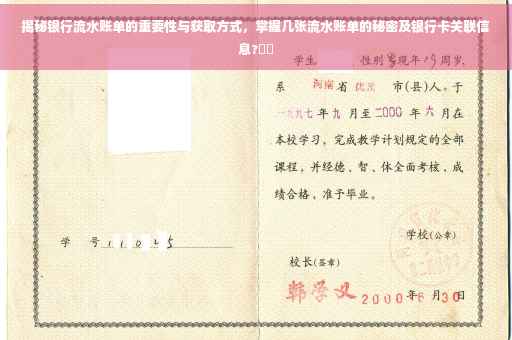 摘要:银行流水账单对财务记录至关重要,反映了个人或企业的资金流向和交易情况。获取银行流水账单可以通过网上银行、手机银行或柜台办理。几张流水账单中可能隐藏着多张银行卡的使用情况,包括收入、支出和余额等细节。务必妥善保管流水账单,以备不时之需。