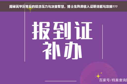 随着时代的发展,越来越多的高学历人才开始面临生活压力,其中最为人们所关注的便是购房问题,作为一名在读博士生,他们是否也需要面对购房的经济压力?购房收入证明对于他们来说又意味着什么呢?本文将就此话题展开探讨,揭示在读博士生购房背后的故事。