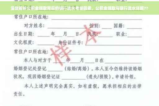 摘要:公积金提取过程中需要考虑银行流水,银行流水是评估公积金提取资格和额度的重要因素之一。本文深度解析公积金提取背后的银行流水考量因素,包括流水的真实性、稳定性、收入状况等方面。通过了解银行流水的具体要求,有助于公积金提取的顺利进行。