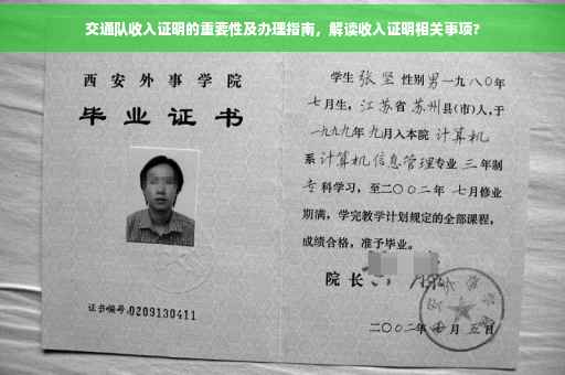 摘要:本文将探讨交通队收入证明的重要性,并解读如何正确获取此证明。对于需要交通队收入证明的个人或企业,本文将提供简洁明了的指导,包括了解为何需要此证明以及具体的办理步骤。通过本文,读者可以了解交通队收入证明的作用和办理流程,以便顺利获取所需证明。