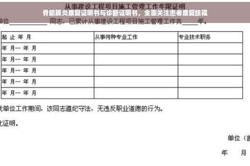 骨筋膜炎是一种因长期劳损、过度使用或不当运动导致的骨骼与筋膜发生炎症反应的运动损伤疾病,近年来,随着人们生活方式的改变和工作压力的增大,其发病率逐渐上升,本文旨在为患者提供一份详细的骨筋膜炎康复证明书,证明其康复状况及后续注意事项,并介绍张先生的康复案例,帮助患者了解骨筋膜炎的康复过程和治疗方案。