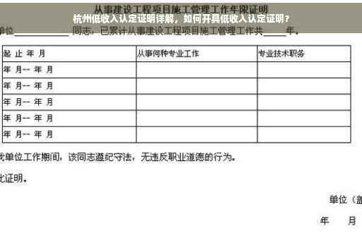 随着社会的持续进步,收入差距逐渐加大,低收入群体的生活困境日益受到社会各界的关注,为了帮助这一群体改善生活条件,政府积极出台了一系列针对性的政策,低收入认定证明是帮助低收入家庭享受各类优惠政策的重要凭证,本文将全面介绍杭州低收入认定证明的相关知识,为读者解答如何申请、认定标准以及如何使用该证明等常见问题。
