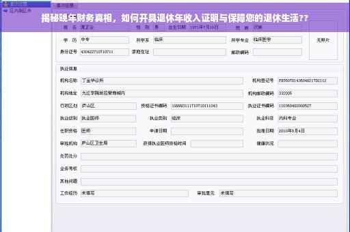 随着社会的进步和经济的发展,越来越多的人步入了退休生活,除了生活环境和生活品质的变化,财务状态也是退休后生活的重要关注点之一,退休年收入证明作为反映退休人员经济状况的重要文件,对于享受社会福利、规划个人财务等方面具有至关重要的作用,本文将全面解析退休年收入证明的相关内容,帮助大家更深入地了解退休生活的财务真相。