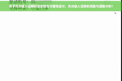 摘要:关于代办收入证明的安全性与可靠性问题,存在诸多讨论。代办收入证明作为一种服务,其安全性受到多种因素的影响。在选择代办服务时,应谨慎评估其信誉和资质,了解相关风险。个人应保护好自己的隐私和信息安全,避免泄露个人重要信息。关于代办收入证明的安全性,需要进一步探讨和完善相关法规,以确保公众利益不受损害。