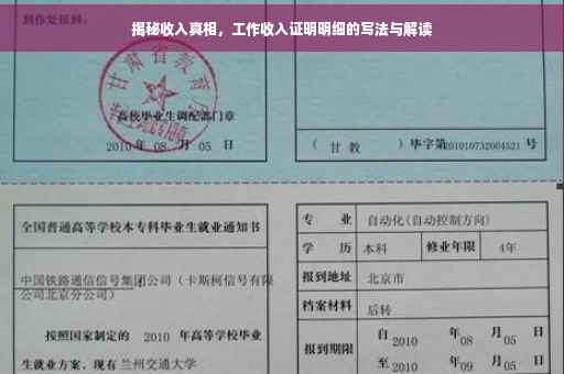 摘要:本文将介绍如何撰写工作收入证明明细,揭示个人收入的真相。文章将简要说明工作收入证明明细的重要性,并阐述撰写过程中需要注意的格式和内容要点,包括收入来源、金额、时间段等详细信息。帮助读者了解如何准确、清晰地呈现个人收入状况,以便在需要时提供有力的证明。
