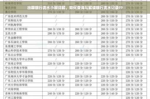 随着全球化的推进,越来越多的人选择走出国门,探索更广阔的世界,在申请签证、办理海外业务或进行跨境投资时,银行流水作为财务证明的重要一环,其重要性日益凸显,对于普通大众来说,出国银行流水小额可能是一个常被忽视的问题,本文将详细解读出国银行流水小额的相关问题,帮助大家更好地了解和应对。