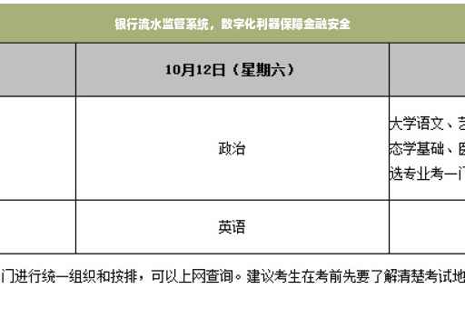银行流水监管系统作为保障金融安全的数字化利器,在银行业发挥着越来越重要的作用,通过实时监控、风险预警和数据分析,为银行提供全方位的风险管理支持,面对挑战,银行流水监管系统仍需不断完善和优化,以确保金融市场的稳定与安全。