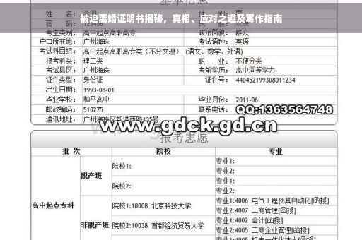 摘要:,,本文介绍了被迫离婚证明书的写作方式和要点,同时揭示了背后隐藏的真相和应对之道。通过本文,读者可以了解到如何撰写被迫离婚证明书,包括证明书中需要包含的关键信息和细节。本文还探讨了如何应对离婚带来的心理和情感问题,以及如何寻求法律援助和维权途径。阅读本文,有助于了解离婚真相并找到应对方法。