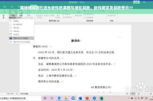 随着科技的发展,互联网上出现了一种名为“模拟银行流水软件”的工具,这类软件声称能帮助用户生成虚假的银行流水记录,从而满足某些特定需求,如贷款、信用卡申请等,这些软件背后究竟隐藏着怎样的真相?它们是否安全?本文将对此进行深入探讨,揭示模拟银行流水软件的真相与潜在风险。