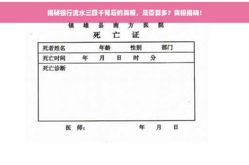 摘要:银行流水三四千背后可能隐藏着多种真相,需要结合具体情况分析。对于不同收入群体和地区而言,银行流水三四千可能算多或少。文章将探讨银行流水背后的真相,包括可能的收入来源、消费支出等方面,帮助读者更全面地了解银行流水背后的含义。