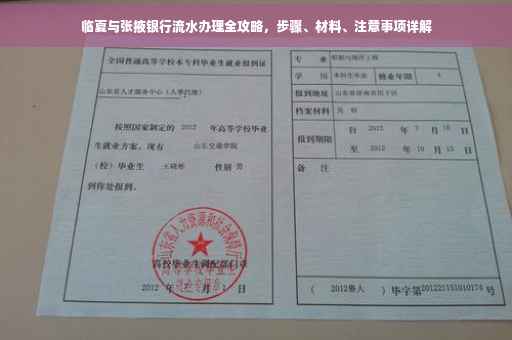 摘要:本文将详细介绍临夏办理银行流水的步骤、所需材料以及注意事项。包括从张掖出发办理银行流水的相关信息。读者可以通过本文了解如何准备材料、遵循流程以及避免不必要的麻烦,顺利完成银行流水办理。