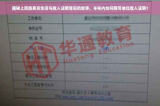 摘要:本文将揭示上班族的真实生活,探究半年内单位收入证明背后的故事。本文将指导读者如何撰写一份有效的上班半年单位收入证明,同时深入了解上班族在工作中的艰辛与收获,以及收入证明在职业发展中的重要性。阅读本文,将帮助读者更好地理解上班族的生活状态,并提升个人职业发展的能力。