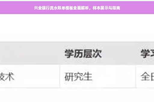 随着社会的快速发展,越来越多的人开始关注个人财务管理的重要性,作为自媒体作者,我深知如何有效地管理个人财务对于每个人来说都是至关重要的,在进行个人财务规划时,兴业银行的流水账单模板是一个重要的参考工具,本文将详细介绍兴业银行流水账单模板的内容和使用方法,帮助读者更好地了解如何管理自己的财务。