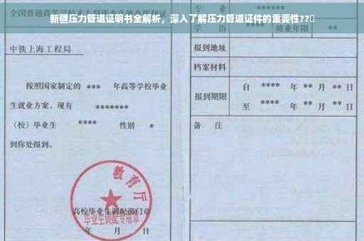 在新疆地区,压力管道广泛应用于石油、化工、天然气等重要工业领域,作为保障这些领域安全生产的关键基础设施,压力管道证明书的重要性不言而喻,本文将对新疆压力管道证明书进行详细介绍,包括其办理流程、所需材料、注意事项以及相关法规标准,以帮助企业或个人更好地了解和掌握相关知识。
