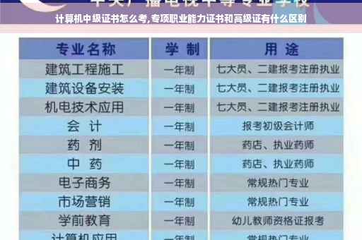 专项职业能力证书和高级证是两种不同的证书类型,它们之间存在一些区别。下面是它们的一些主要区别: