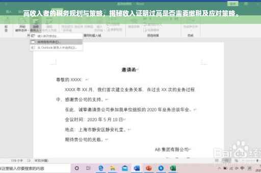 随着经济的发展和个人收入水平的提高,越来越多的人开始关注税务问题,尤其是收入较高的人群,一些人可能会因为自己的高收入证明而面临高额的税负,因此需要进行合理的税务规划和策略调整,本文将围绕这一主题展开,探讨高收入者如何面对税务问题,以及如何制定合理的税务规划和策略。