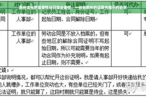 我们生活在一个快节奏的社会环境中,每个人都需要面对生活的压力与挑战,在这个过程中,我们常常忽视了一个日常必需场所的重要性——厕所,本文将从健康、心理、社会文化等多角度,深入探讨厕所的重要性,并阐述为何每个人都需要一份“上厕所的证明书”。