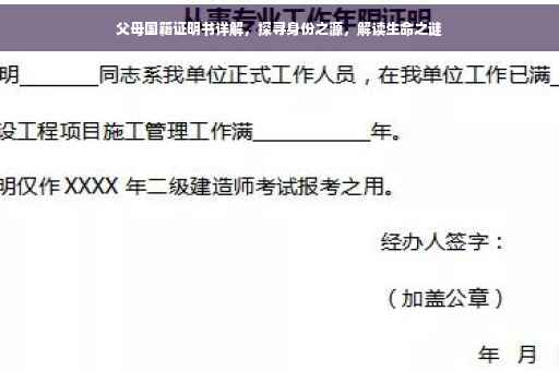 每个人的生命中,都有一个追寻根源的旅程,父母国籍证明书,作为我们身份认同的重要文件之一,承载着我们的生命起源与家族历史,本文将为您详细解读父母国籍证明书的重要性,帮助您了解如何获取和使用这份证明,同时探讨与之相关的家族历史探寻和个人身份认知。