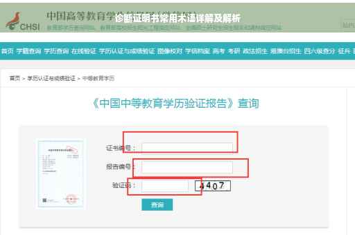 摘要:,,本文解析诊断证明书常用术语,介绍了诊断证明书中常见的专业术语及其含义,包括患者基本信息、疾病诊断、治疗方案、病情评估等方面的术语。通过解析这些术语,帮助读者更好地理解诊断证明书的内容,以便患者及其家属能够准确了解病情和治疗方案。本文还提醒读者注意诊断证明书的真实性和权威性,确保医疗信息的准确性。