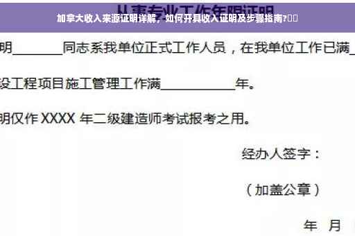摘要:本文将详细介绍加拿大收入来源证明的重要性及其开具流程。内容包括了解证明的目的、所需材料、具体步骤和注意事项等。旨在帮助读者了解如何合法有效地开具加拿大收入来源证明,以便在加拿大工作或生活中使用。