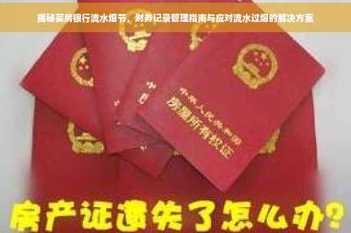 在购房过程中,银行流水作为证明个人经济稳定性和偿还能力的重要依据,其重要性不言而喻,许多购房者在准备银行流水时遇到了“流水太细”的问题,导致在贷款审批环节遭遇困扰,本文旨在深入解析买房银行流水的细节问题,帮助购房者更好地管理个人财务记录,顺利实现购房梦想。