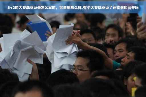 3+2大专是中专学校开设的一种班,就是初中毕业生在中专报名读五年书就可以直接拿大专毕业证了,其实是成人高考大专毕业证,只有通过对口高职进入的大专才是全日制,所以3+2的大专毕业证是成人高考大专毕业证,含金量不如全日制。