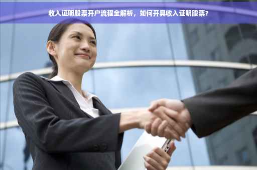 摘要:本文将详细介绍收入证明股票的开户流程。介绍什么是收入证明股票及其重要性;阐述开户前的准备工作和所需材料;具体讲解开户流程及注意事项;强调收入证明股票的开具方法和注意事项。帮助投资者顺利开设股票账户,进行证券投资。