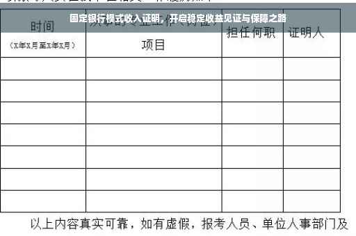 随着现代社会的发展,越来越多的人开始关注个人财务管理和理财规划,固定银行模式作为一种常见的理财方式,为广大投资者提供了一种相对稳定的收益渠道,本文将详细介绍固定银行模式的收入证明,帮助读者了解其在个人财务规划中的重要性。