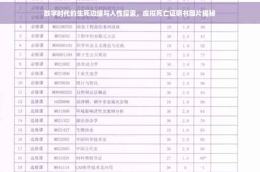 摘要:随着数字时代的发展,虚拟死亡证明书应运而生,成为探索人性与生死边缘的新话题。这一新兴概念涉及到虚拟世界与现实生活的交汇,引发了人们对生命定义、死亡认知以及虚拟世界的深度思考。通过虚拟死亡证明书图片,人们得以一窥这一领域的神秘面纱,同时也促使对生命伦理和虚拟技术的进一步探讨。