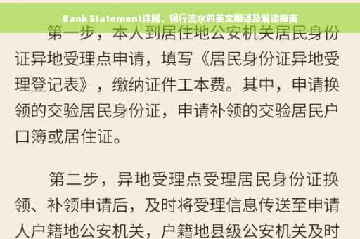 银行流水作为个人和企业财务管理的重要工具,具有广泛的应用和重要的作用,通过本文的介绍,希望读者对银行流水有更深入的了解,更好地应用和理解Bank Statement这一概念,在使用过程中,客户需要注意保护个人信息和账户安全,妥善保管银行流水以应对不时之需,随着金融环境的不断变化,我们需要不断学习和掌握相关知识,以便更好地适应全球化金融环境的需求。