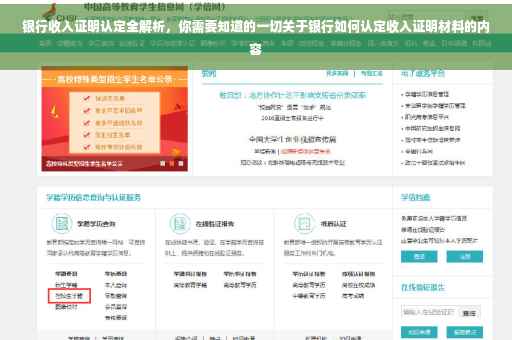 摘要:本文将全面解析银行如何认定收入证明材料,为你提供详尽的指南。从收入证明的种类、要求到具体认定流程,让你了解银行对收入证明的真实要求和标准。无论你是贷款申请者还是普通客户,本文都将为你揭示银行认定收入证明的全过程,助你顺利办理银行业务。
