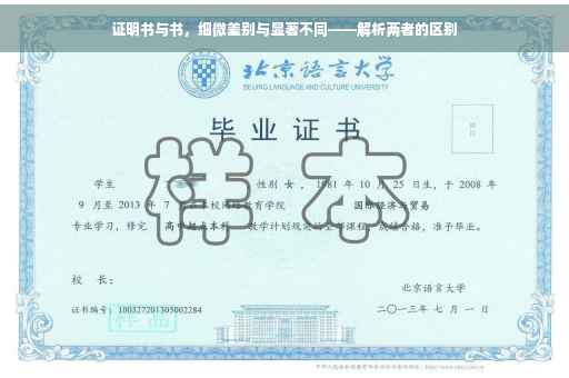 在我们的日常生活中,经常会接触到各种各样的文件和资料,其中最为常见的莫过于证明书和书,虽然它们都是记录信息、传递知识的媒介,但在功能、形式和使用场合等方面却有着明显的不同,本文将详细解读证明书与书的区别,帮助大家更好地理解这两者的差异。