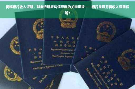 在当今社会,随着经济的不断发展和金融市场的日益繁荣,越来越多的人开始关注自己的财务状况,银行作为金融机构的代表,为我们提供了各种金融服务,其中之一就是收入证明,银行开具的收入证明对于个人信用评估、贷款申请、信用卡办理等方面都具有重要意义,本文将详细介绍银行收入证明的作用、办理流程以及注意事项,帮助大家更好地了解这一财务透明度与信誉度的重要证明。