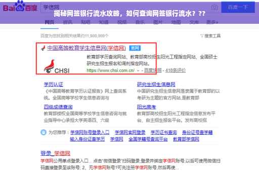2、进入网签银行流水页面:在网银系统中找到“网签银行流水”或“电子回单”等选项,点击进入。