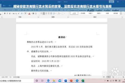 摘要:本文将揭示山东济南银行流水背后的故事。通过深入了解,发现银行流水账单中隐藏着许多细节和故事,涉及到个人和企业之间的经济往来。本文将探讨这些故事背后的真相,揭示银行流水账单的重要性以及如何利用它们来洞察经济活动。