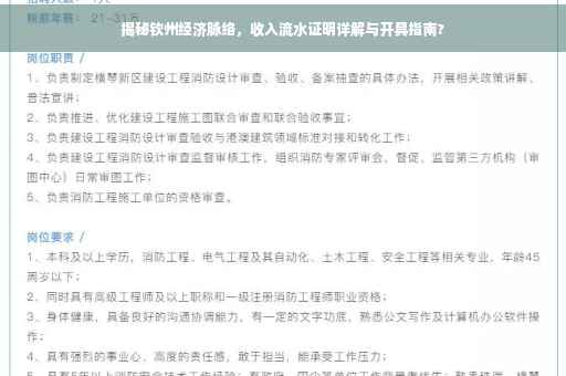 在当下社会,经济的蓬勃发展引起了人们对自身收入水平和城市经济发展状况的高度关注,钦州,这座充满活力的城市,其经济发展尤为引人注目,本文将围绕“钦州收入流水证明”这一主题,深入探讨钦州的经济发展、各行业收入状况以及个人收入证明的重要性及应用场景,为读者提供更为详尽的钦州经济了解。