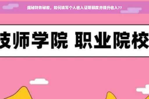摘要:本文将探讨个人收入证明额度的相关问题,揭示财务秘密并分享提升收入的方法。文章将介绍如何填写个人收入证明额度,同时提供一些实用的建议,帮助读者改善自己的财务状况并增加收入。通过本文,读者可以更好地了解自己的财务情况并采取有效措施提高生活水平。
