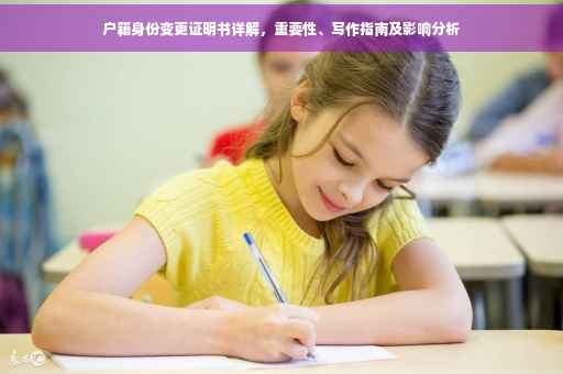 户籍身份变更证明书是一份重要的法律文件,用于证明个人的身份信息和户籍变动情况,在现代社会中,随着人口流动和迁移的增加,户籍身份变更证明书的应用越来越广泛,本文将通过详细介绍户籍身份变更证明书的用途、办理流程、注意事项及其重要性,并结合实际案例,帮助读者更好地了解和运用这一重要文件。