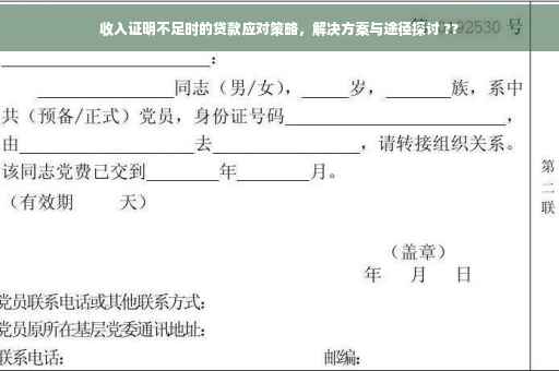 在现代社会,贷款已成为人们解决资金需求的常见方式,在申请贷款过程中,许多人都遇到了收入证明不足的问题,面对这种情况,我们应该如何应对呢?本文将为您详细解析贷款收入证明的重要性,以及当收入证明不足时,您可以采取的策略和措施。