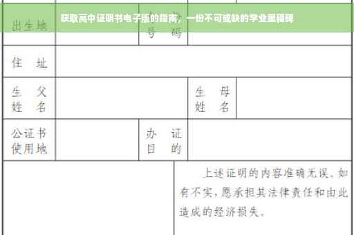 在当今社会,高中教育作为连接基础教育与高等教育的桥梁,其重要性日益凸显,高中证明书作为个人学业成就的一种证明,有时在求职、升学或其他重要场合中发挥着不可或缺的作用,如何获取高中证明书呢?本文将为您详细解答这一问题。