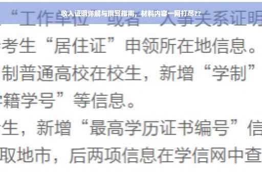 摘要:本文将详细介绍收入证明说明材料的撰写要点和注意事项。内容涵盖收入证明的概念、用途、格式要求以及具体撰写时需要注意的细节,包括填写个人信息、收入情况、工作单位和证明人信息等。通过本文,读者可以了解如何正确撰写收入证明说明材料,以便在申请贷款、信用卡、租房等场合提供有效的证明。??