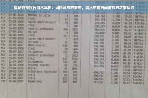 近年来,随着社会的快速发展,刻章银行流水这一词汇逐渐进入公众视野,一些人因各种原因需要伪造银行流水,从而寻求刻章服务,刻章银行流水究竟是什么?背后隐藏着怎样的风险?本文将为您揭开刻章银行流水的真相,揭示其潜在风险,并探讨应对策略。