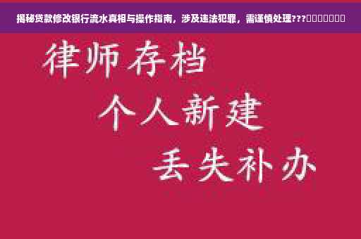 在当今社会,随着经济的发展和金融市场的繁荣,越来越多的人需要贷款来满足各种需求,而在申请贷款过程中,银行流水作为评估个人信用和还款能力的重要依据之一,往往起到至关重要的作用,在某些情况下,我们可能需要修改或调整银行流水,以应对贷款申请中的种种问题,本文将围绕“贷款修改银行流水”这一主题,揭示背后的真相,提供操作指南,帮助读者更好地理解和应对这一问题。
