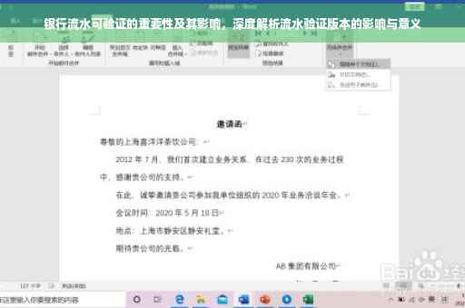 随着金融行业的快速发展,越来越多的人开始关注个人财务管理和信用评估,在这个过程中,银行流水作为评估个人经济状况和信用水平的重要依据,其验证的重要性日益凸显,本文将详细介绍银行流水可验证的意义、作用及其对个人和社会的影响。