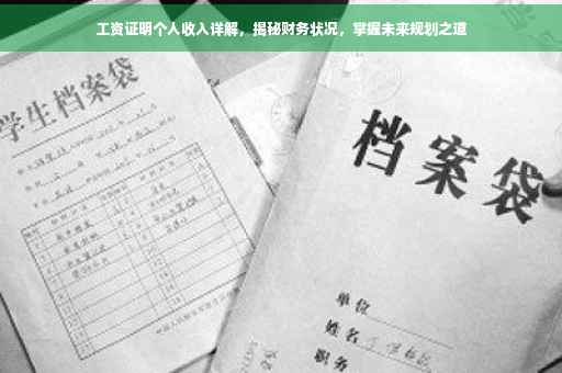 工资证明个人收入是了解自身经济状况的重要途径之一,通过揭秘个人收入,我们可以更好地了解自己的经济状况和发展方向,在此基础上,我们需要合理规划个人财务,设定财务目标,制定预算计划,进行多元化投资,我们还需要关注未来发展方向,提升职业技能,关注行业动态,尝试多元化发展,我们才能更好地实现自己的财务目标和生活梦想。