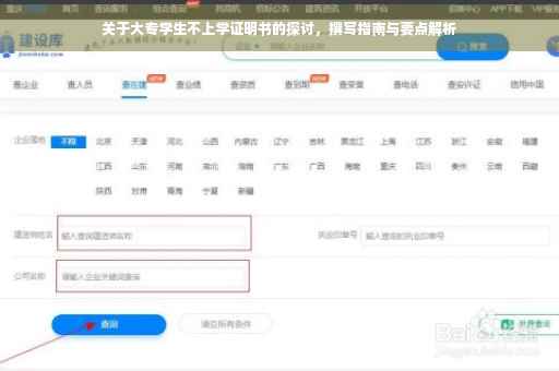 摘要:本文将探讨大专学生不上学证明书的撰写方式。文章指出,随着教育体系的变化和学生个人情况的不同,有些学生可能因为各种原因无法继续学业,需要开具不上学证明书。本文将介绍如何针对大专学生的具体情况,撰写一份规范、准确、清晰的不上学证明书,包括证明书的格式、内容要点以及注意事项等。希望通过本文的探讨,能够帮助需要的学生和家长更好地理解和处理相关问题。