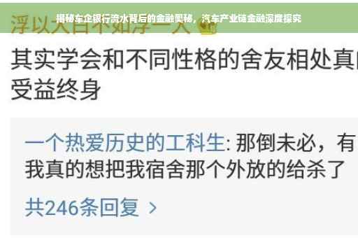 随着汽车产业的飞速发展,汽车产业链金融逐渐成为企业运营不可或缺的一环,银行流水作为产业链金融的重要组成部分,对于车企来说具有极其重要的意义,本文将深入探讨车企银行流水的内涵、作用及其在产业链金融中的地位,揭示汽车产业链金融的奥秘。