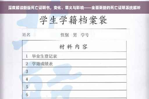 随着社会的不断进步和医疗技术的日益发展,我们面临着许多新的挑战和机遇,在这个过程中,死亡管理作为一个重要的社会议题,也经历了不断的改进和优化,新版死亡证明书应运而生,引起了社会各界的广泛关注,本文将详细解读新版死亡证明书的变化、意义以及可能带来的影响。