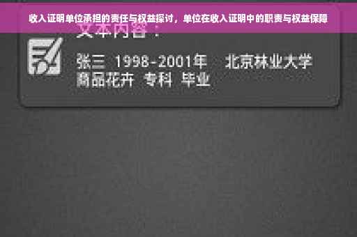 摘要:本文将探讨收入证明单位所承担的责任与权益。收入证明作为个人经济能力的重要证明,其真实性对于个人在社会生活中的各种交易和决策具有重要影响。本文将分析单位在开具收入证明时应承担的责任,包括确保信息真实、保护个人隐私等方面,同时探讨单位在此过程中所享有的权益。通过深入探讨,旨在明确双方责任与权益,促进公平合理的社会交往。